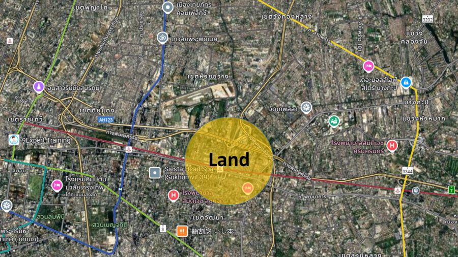 ขายที่ดินเปล่าโซนพระราม 9 ซอยศูนย์วิจัย ใกล้โรงพยาบาลกรุงเทพ