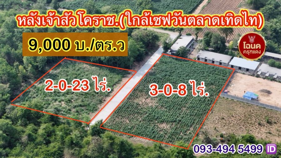 ข่าวดี.📢(9,000บ./วา) #ที่ดินจัดล็อค เฉลี่ย.(1 ไร่.ะ3.6 ล้าน) | หลังเจ้าสัวโคราช. | *น้ำไม่ท่วม. | ราคาถูกพิเศษ หายาก!! ( ถ. คอนกรีต )