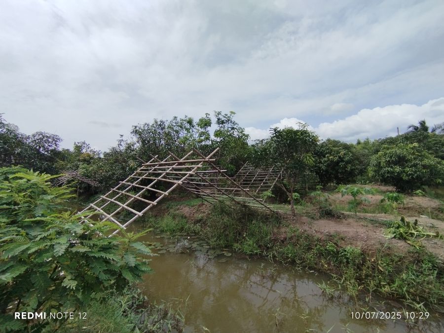 出售土地3個地契,總面積5-1-86萊(2,186平方哇),緊鄰邦巴功河。此地塊已開發為有機農場超過5年,園內種植超過300種樹木、蔬菜和水果。土壤完全不含任何有害化學物質。