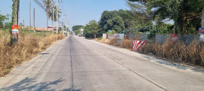 ด้านหน้าที่ดินติดถนนคอนกรีตพร้อมวางท่อระบาย