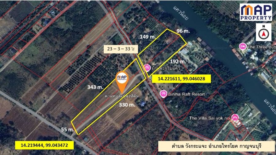- ที่ดินแปลงสวย ตั้งอยู่ใน อ.ไทรโยค จ.กาญจนบุรี มีความโดดเด่นและมีศักยภาพสูงอย่างยิ่งเพราะติดแม่น้ำแควน้อย โอบล้อมด้วยภูเขาได้วิวธรรมชาติ บรรยากาศร่มรื่น เงียบสงบ อากาศเย็นสบายตลอดปี