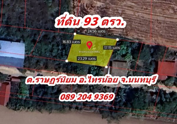 ขายที่ดิน 93 ตร.ว ราคาถูก ต.ราษฎร์นิยม อ.ไทรน้อย จ.นนทบุรี คุณนก 📞0892049369