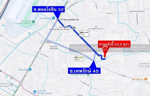 - เส้นทางหลักซอยพหลโยธิน52 หรือ ซอยเทพรักษ์45