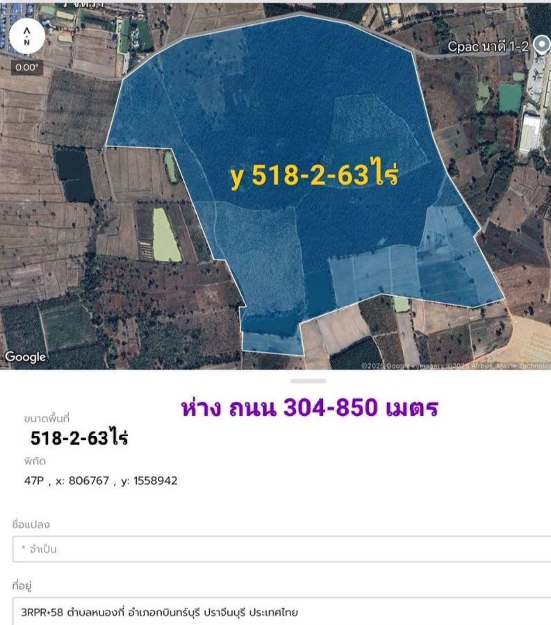 📌 LL555 ขายที่ดินผังม่วงแท้ 518.5 ไร่ ติดนิคมกบินทร์บุรี จ.ปราจีนบุรี