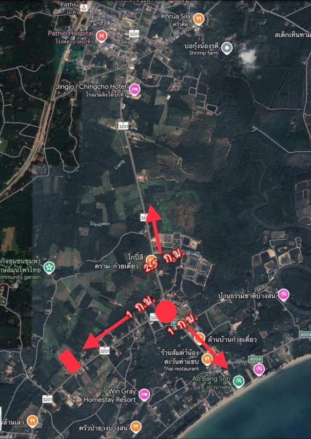 ที่สวย 1 ไร่ ปะทิว ติดลาดยางหลักไปสนามบิน ใกล้ทะเลเพียง 1.5 กิโลเมตร