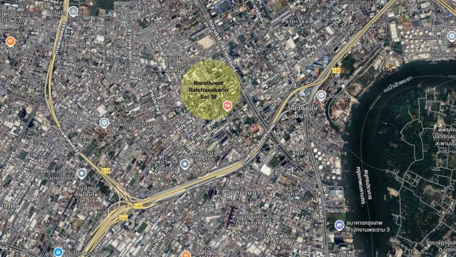 บ้าน 2 ชั้น ในซอย นราธิวาสราชนครินทร์ 18 ทำเลดี จะไปถนนสาธุประดิษฐ์ และถนนจันทน์ก็ง่าย และยังใกล้เซ็นทรัลพระราม 3 , ศูนย์การค้า ดิอัพ พระราม 3 , โลตัสพระราม 3 และทางด่วน
