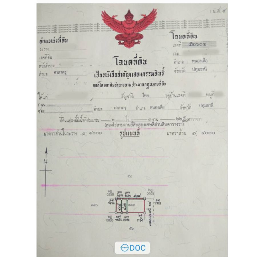 ขายที่ดิน คลอง 14 หนองเสือ ปทุมธานี(มีสิ่งปลูกสร้าง)