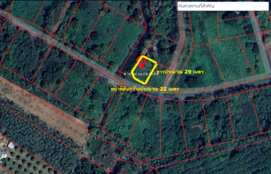 หน้าที่ดินติดถนนกว้างประมาณ 22 เมตร ยาวประมาณ 29 เมตร