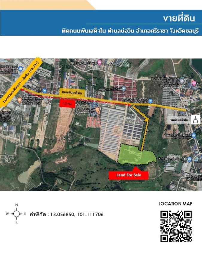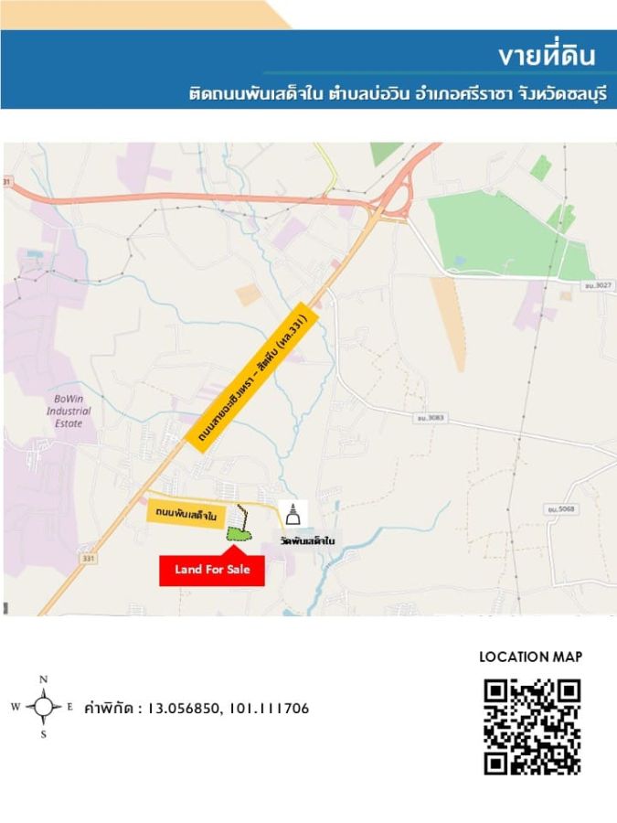 ขายที่ดิน ติดถนนพันเสด็จใน ตำบลบ่อวิน อำเภอศรีราชา จังหวัดชลบุรี
