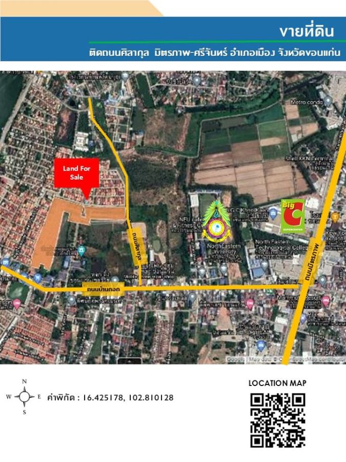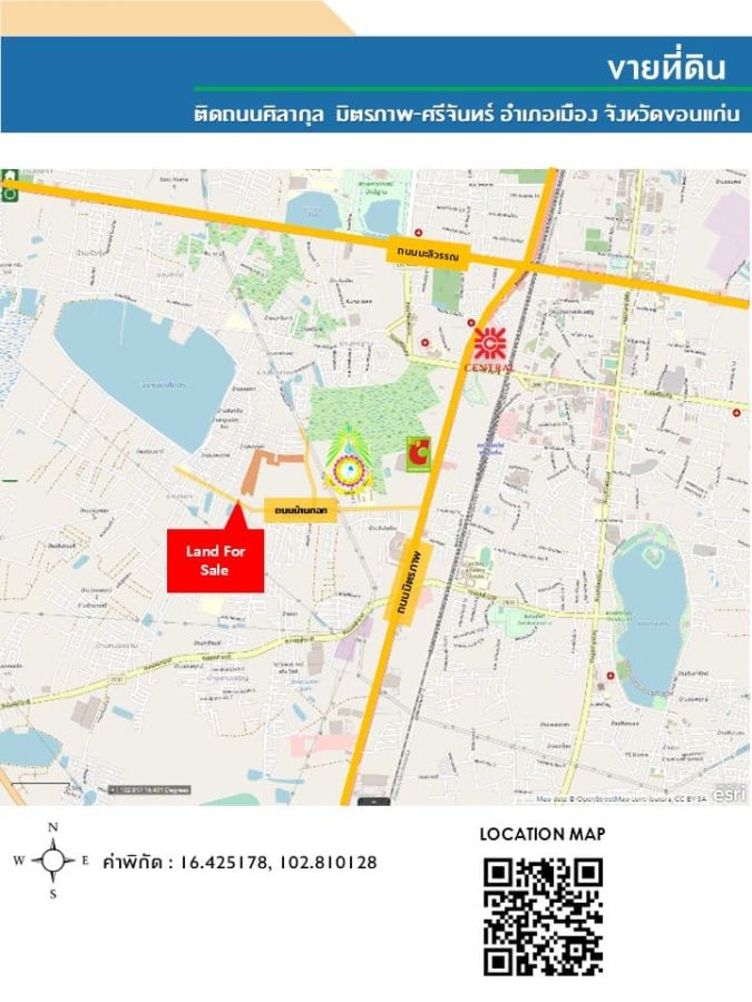 ขายที่ดินติดถนนศิลากุล มิตรภาพ-ศรีจันทร์ ตำบลบ้านเป็ด อำเภอเมือง จังหวัดขอนแก่น