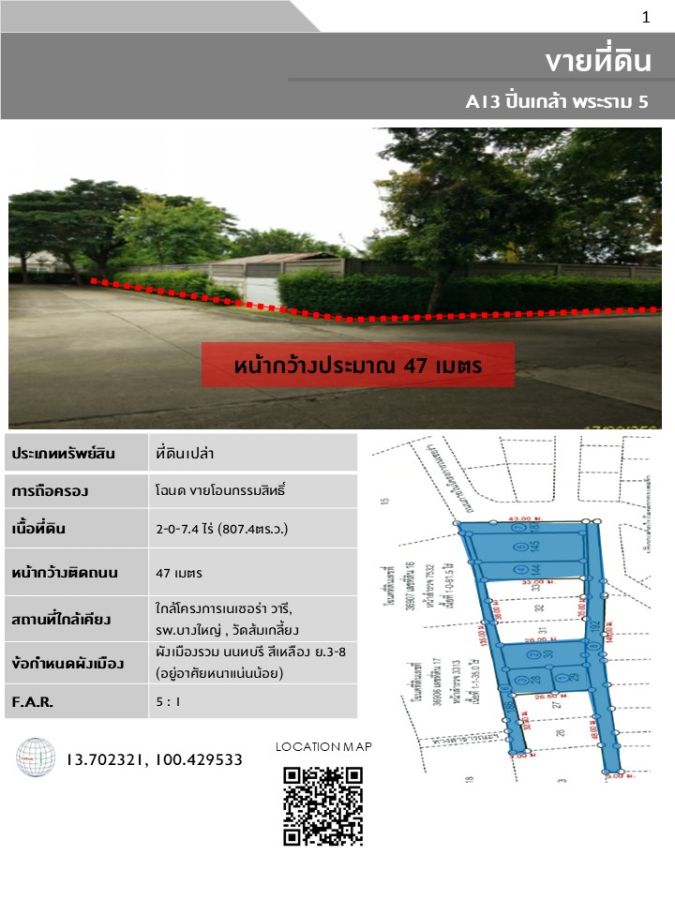 ที่ตั้ง : ใกล้โครงการเนเชอร่า วารี, รพ.บางใหญ่ , วัดส้มเกลี้ยง หน้ากว้าง 47 เมตร