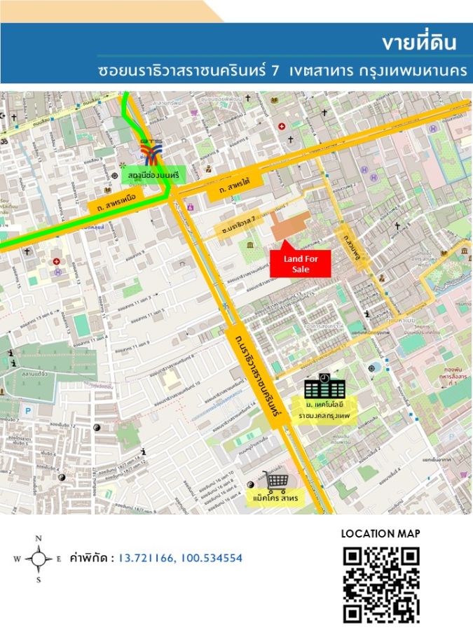 ขายที่ดิน เนื้อที่ 9-3-59.9 ไร่ ติดซอยนราธิวาสราชนครินทร์ 7 ย่านสาทร