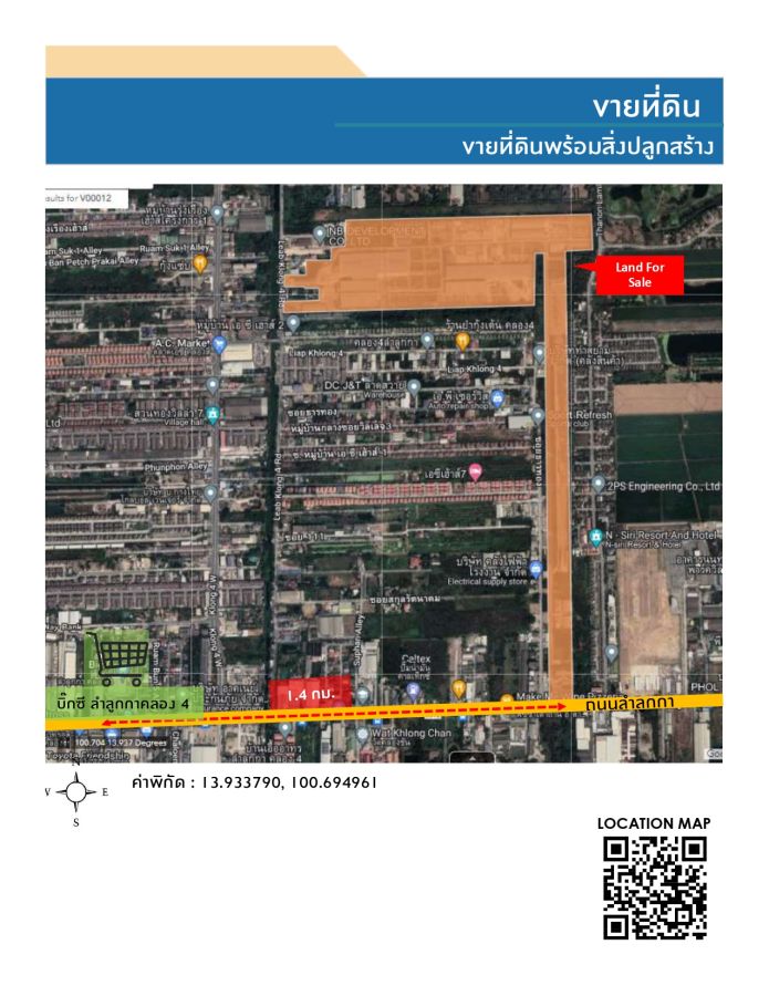 - 1.5 ก.ม. จากบิ๊กซี ลำลูกกา คลอง 4