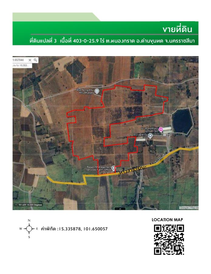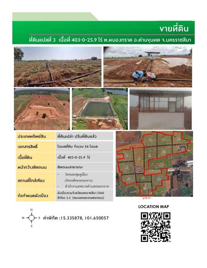 ขายที่ดิน เนื้อที่ 403-0-25.9 ไร่ ติดทางสาธารณะ ต.หนองกราด อ.ด่านขุนทด จ.นครราชสีมา