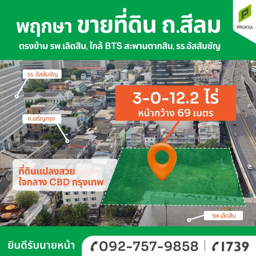 ติดถนนสีลม หน้ากว้าง 69 เมตร