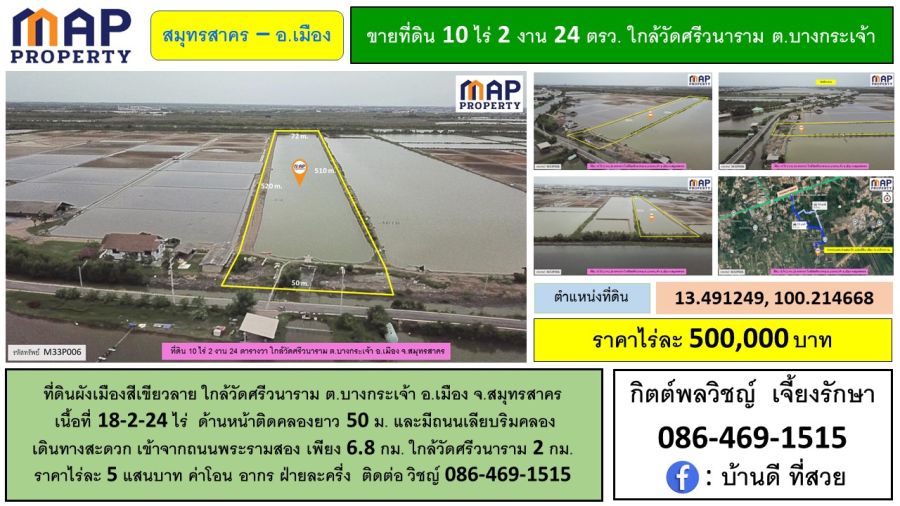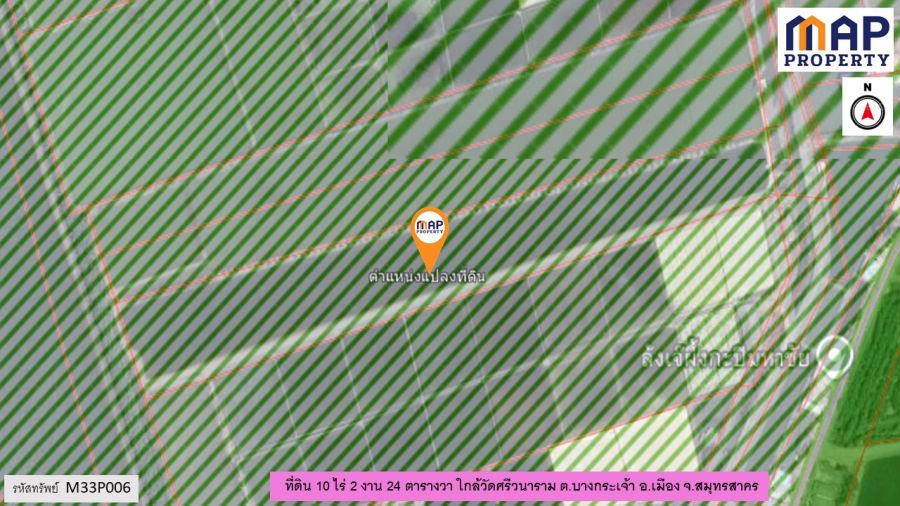 ที่ดินผังเมืองสีเขียวลาย ใกล้วัดศรีวนาราม ต.บางกระเจ้า อ.เมือง จ.สมุทรสาคร