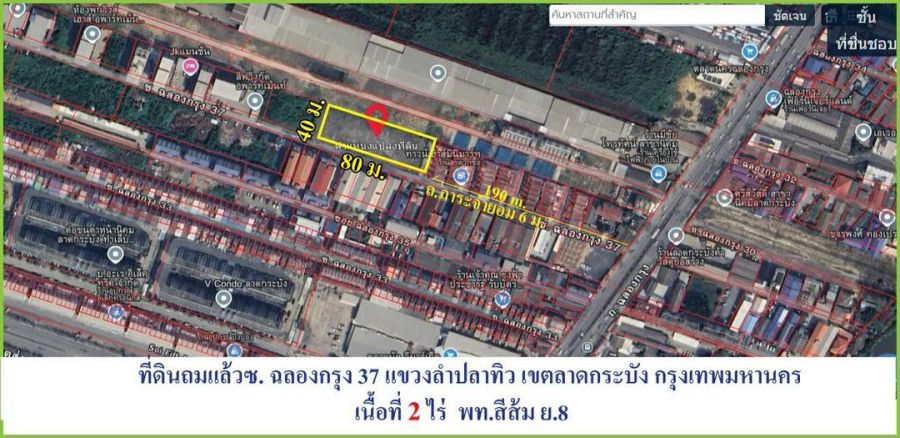 🟠 ที่ดินถมแล้วบนถนนฉลองกรุง ซอย 37 ลำปลาทิว ลาดกระบัง กทม ถนนหน้าที่ดินกว้าง 6 เมตร ( ภาระจำยอม )