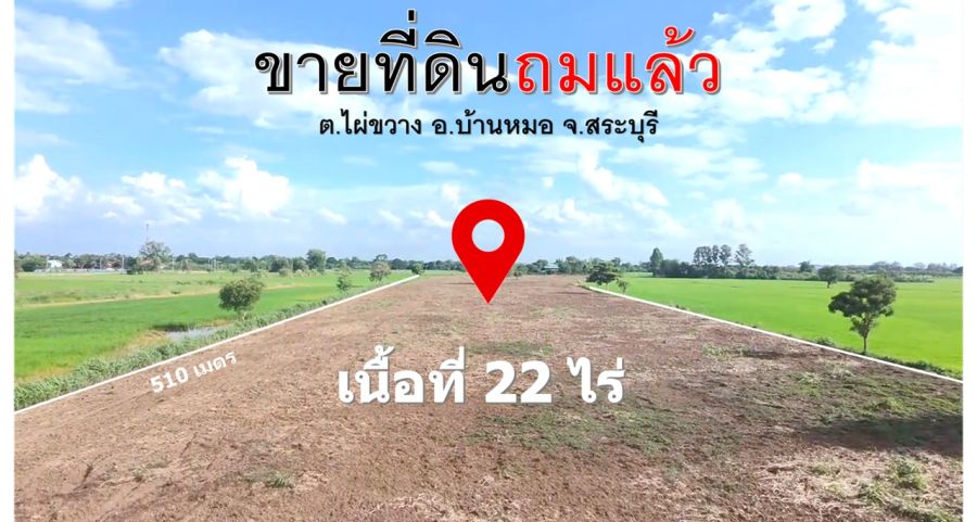 ขายถูกมาก!! ที่ดินถมแล้ว 22 ไร่ ทำเลดี อ.บ้านหมอ จ.สระบุรี ใกล้ถนนสายเอเชีย ตัวเมืองอ่างทอง ตัวเมืองสระบุรี