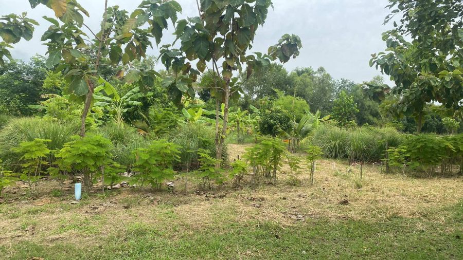 ในพื้นที่ปลูกต้นไม้ไว้หลากหลาย ขุดคลองไส้ไก่ ยกร่องสวนปลูกตะไคร้ไว้ และยังมี มะม่วง กล้วย ชะอม อื่นๆ อีกมากมาย