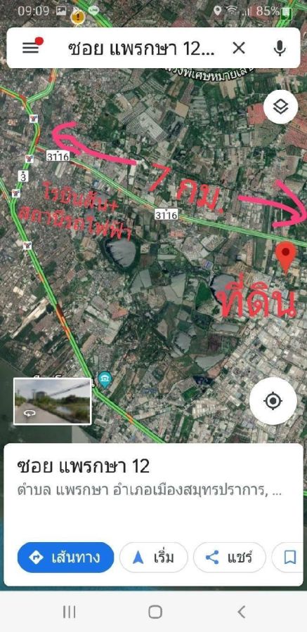 (เหลือง)ที่ดินบนถนนแพรกษาซอย 12 เข้าซอยแค่ 400 เมตร