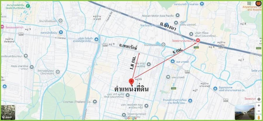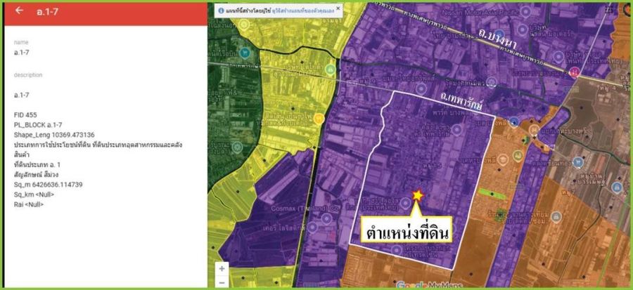 🟣 ขายถูก ใกล้เคียงราคาประเมินกรมที่ดิน ที่ดินถมแล้ว ไม่มีสิ่งปลูกสร้าง ผังสีม่วงเข้ม บนถนนเทพารักษ์ กม.20 ซอยไทยประกัน 35-37 ติดถนน 3 ด้าน อ.บางเสาธง สมุทรปราการ