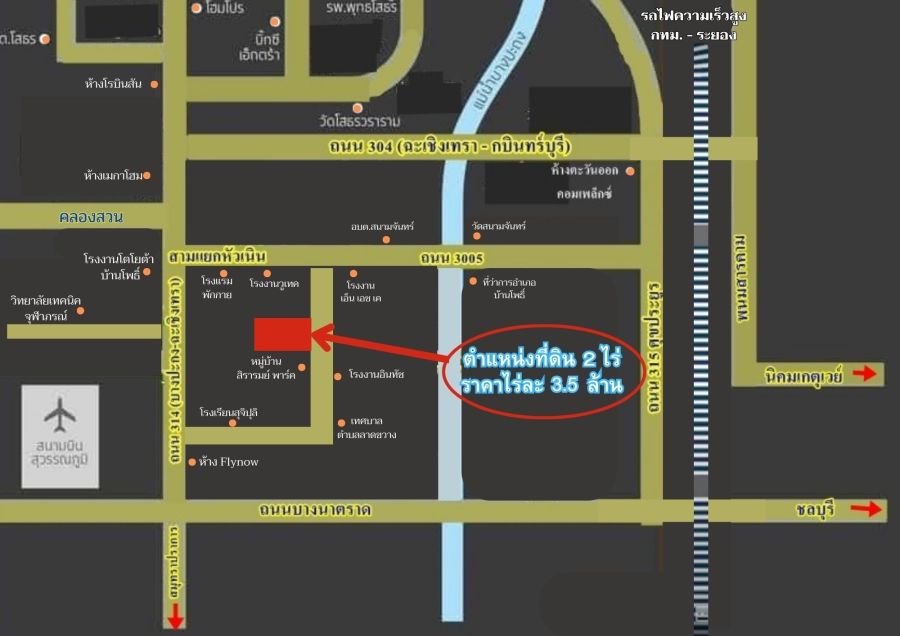 ขายที่ดิน 2 ไร่ ติดคลอง หน้ากว้างติดถนนซอยประมาณ 28 เมตร ซอยนี้มี คลองขนานคู่กับถนน คนในท้องถิ่นเรียกว่า ซอยวัดหัวเนิน ซึ่งแยกเข้ามาจาก ถนนสายหลักชื่อ ถนน 3005 (หัวเนิน-บ้านโพธิ์) ประมาณ 300 เมตร ซึ่งถนน 3005 เป็นถนนที่แยกมาจาก ถนน 314 สิริโสธร หรือ ถนนบางปะกง-ฉะเชิงเทรา