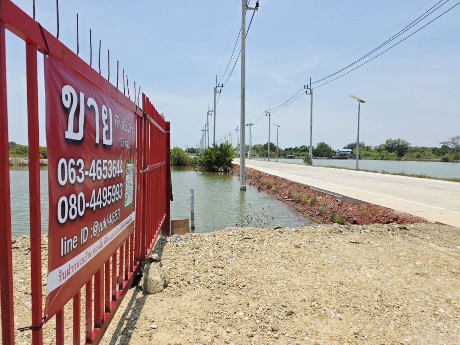 หน้ากว้างติดถนนประมาณ 55 เมตร ลึกประมาณ 135 เมตร ถมแล้ว 3-4ไร่