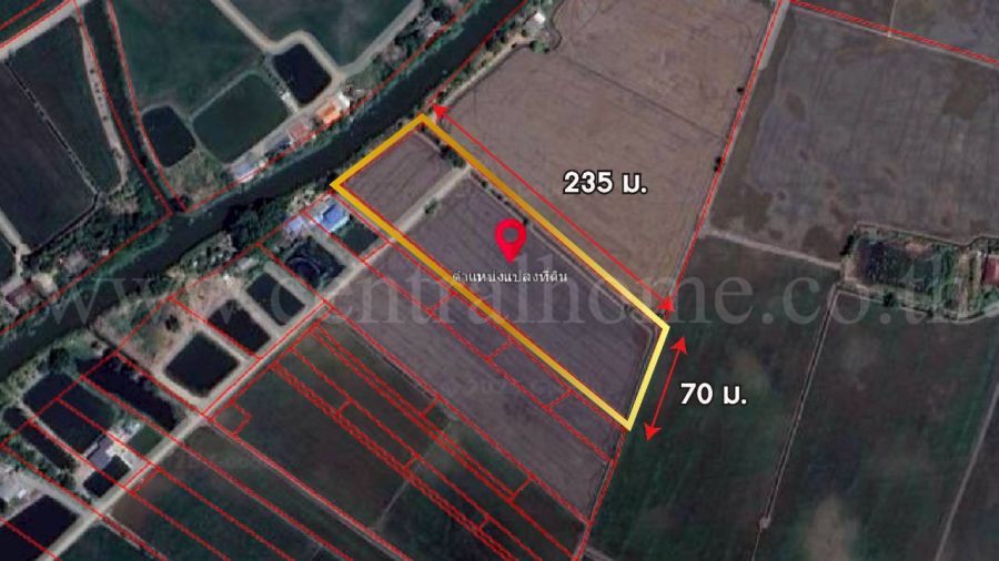 - ที่ดินเปล่า เนื้อที่ 11-1-24 ไร่ กว้าง 70 เมตร ลึก 235 เมตร