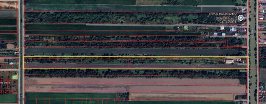 - โฉนด: 3 แปลงติดกัน รูปสี่เหลี่ยมผืนผ้า หน้ากว้าง ~45 เมตร ลึก ~1 กม.