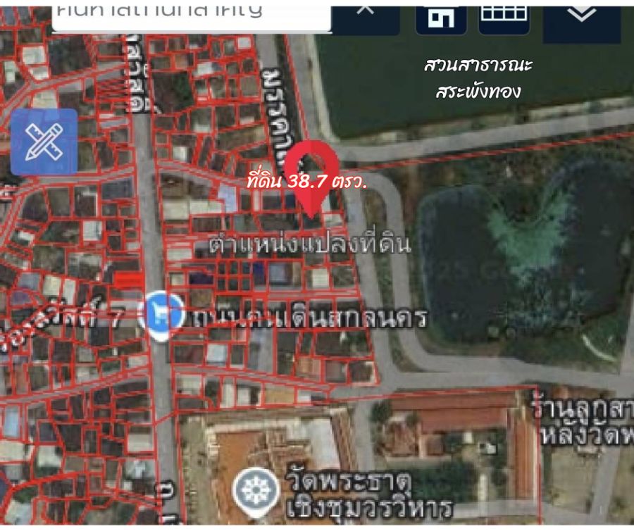 ขายที่ดิน 38.7 ตรว. ในเมืองสกลนคร ถนนผ้าคราม