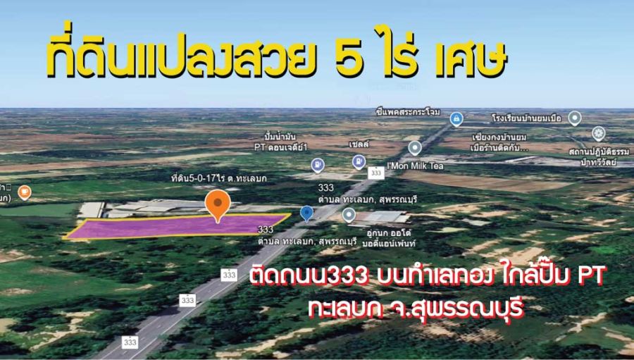 ทำเลทอง: ที่ดินตั้งอยู่บนถนนหมายเลข 333 เพียง 200 เมตรจากปั๊มน้ำมัน PT ทะเลบก ทำให้เป็นทำเลที่โดดเด่นและเข้าถึงง่าย