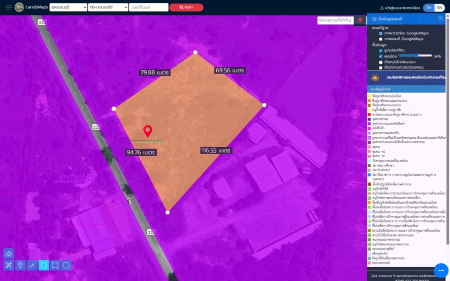 พื้นที่สีม่วง: ด้วยผังเมืองที่เป็นเขตอุตสาหกรรม ทำให้เหมาะอย่างยิ่งสำหรับการสร้างธุรกิจขนาดกลาง ไม่ว่าจะเป็น โกดังเก็บสินค้า, โรงงานขนาดเล็ก, โซลาร์ฟาร์ม หรือปั๊มน้ำมัน