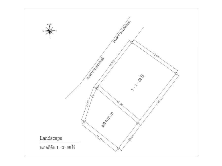 ที่ดินขนาด 1-3-56 ไร่ แบ่งเป็น 2 แปลง