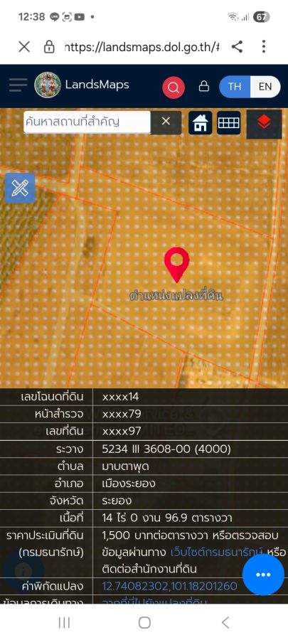 ที่ดินเปล่า14-0-97ไร่ อยู่บ้านบน ต.มาบตาพุด อ.เมืองระยอง ด้านติดถนนเนินพยอม กว้างประมาณ40ม. ขายไร่ละ2.5ล้าน พื้นที่ใกล้เคียง