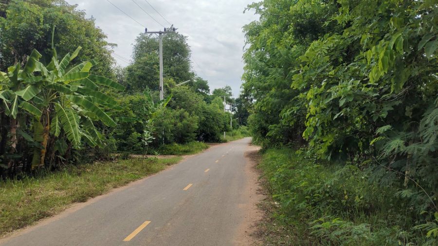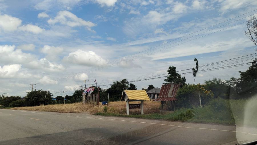 1. ติดถนน ด้านหน้า ตรงข้ามเป็นบึงเก็บน้ำ