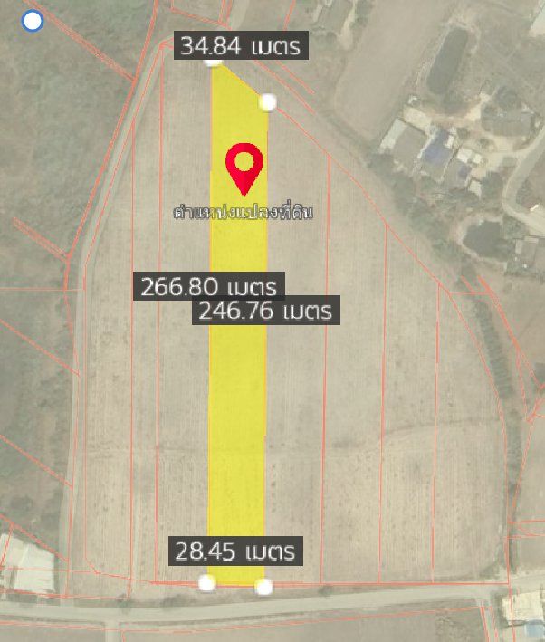 หน้ากว้างติดถนนคอนกรีต 27 เมตร X ยาว 266 เมตร