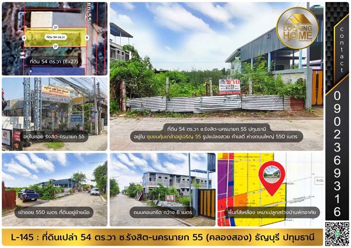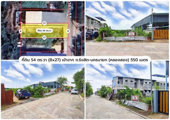 - ที่ดินเปล่า ยังไม่ได้ถม เนื้อที่ 54 ตร.วา กว้าง 8 เมตร ลึก 27 เมตร