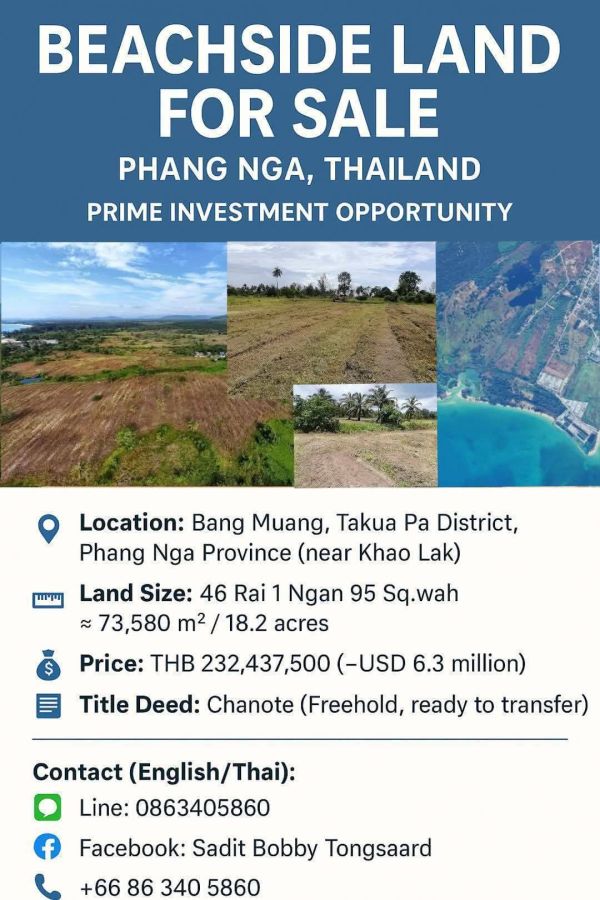 🔴 ขายที่ดินติดทะเล วิวสวย ทำเลดี จังหวัดพังงา – เหมาะสำหรับนักลงทุน!