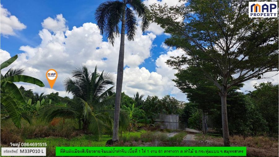 ที่ดินผังเมืองสีเขียวลาย ริมแม่น้ำท่าจีน ต.ท่าไม้ อ.กระทุ่มแบน จ.สมุทรสาคร