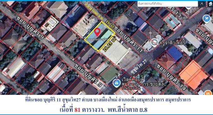 ซอยบุญศิริ 11(สุขุมวิท 27) เนื้อที่ 81 ตรว.