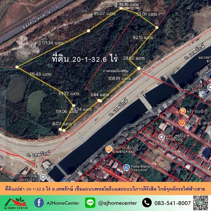 ขายที่ดินเปล่า20-1-32.6ไร่ ถ.เทพรักษ์ เชื่อมถนนพหลโยธินและถนนวิภาวดีรังสิต ใกล้จุดตัดรถไฟฟ้า2สาย