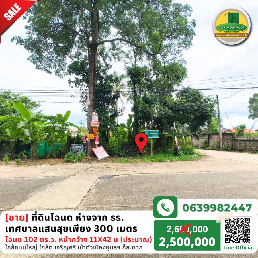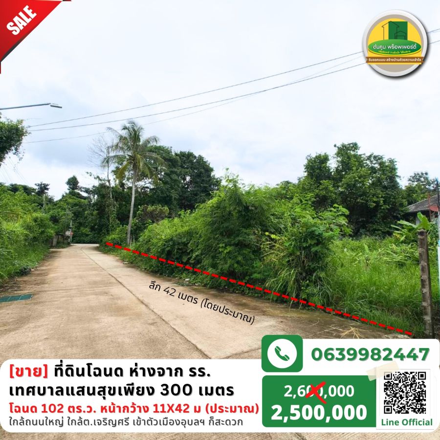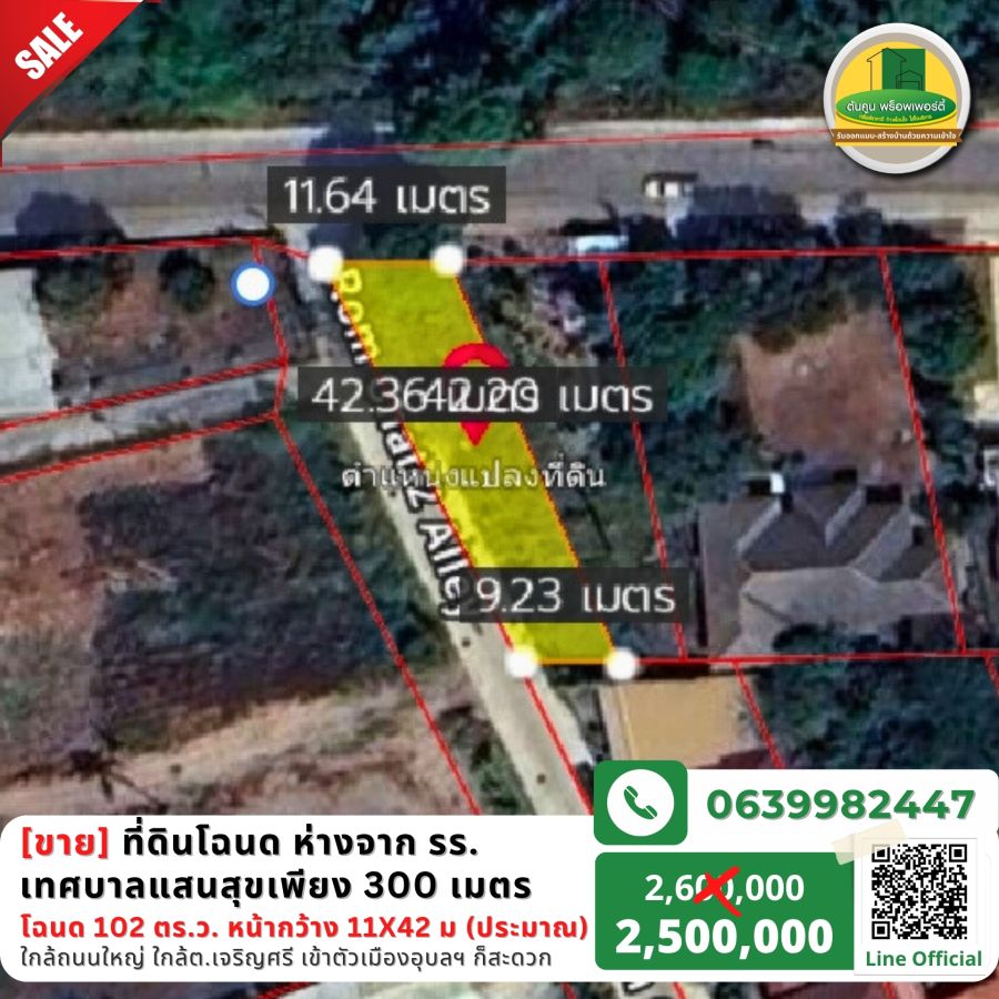 [vาย] ที่ดินโฉนดขนาด 102 ตร.ว. ห่างจากโรงเรียนเทศบาลแสนสุขเพียง 300 เมตร