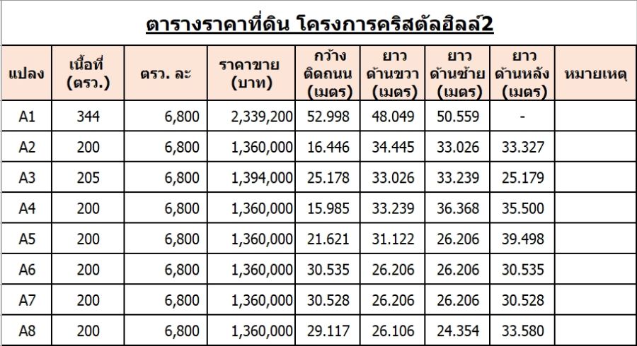 เนื้อที่ดิน แปลงละ 200 ตารางวา