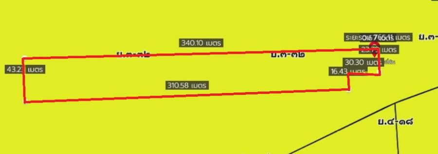 ที่ดิน 8 ไร่ 192 วา หน้ากว้างติดถนนหทัยราษฎร์ 24 เมตร ลึก ลึกกว่า 300 เมตร ด้านหลังกว้าง 43 เมตร
