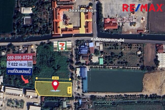 ที่ดินขนาด 622 ตารางวา (1 ไร่ 2 งาน 22 ตร.ว.) ตั้งอยู่ในซอยวัดลาดปลาดุก เพียง 800 เมตรจากปากซอย ตรงข้ามร้านคาเฟ่บรรยากาศดี (ปู่ทองคาเฟ่)