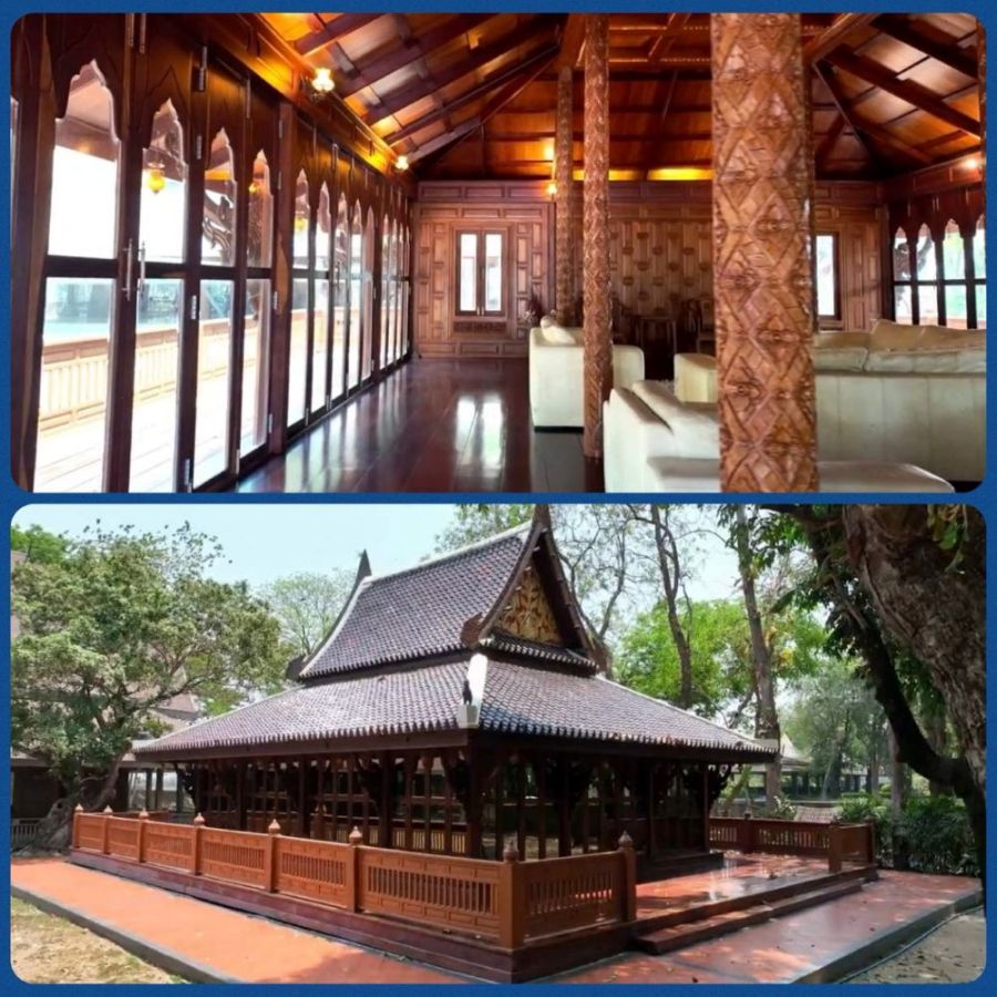 - มีเรือนไทยหลังใหญ่ซุงไม้สัก กว้าง 17.85 ม. ยาว 30.62 ม.