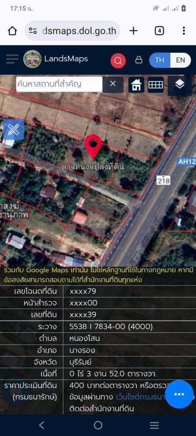 ใกล้ถนนสายหลัก 218 นางรอง-บุรีรัมย์ เพียงประมาณ 40 เมตร ทำเลปากซอยเข้าชุมชน น้ำไฟต่อเข้าได้เลย