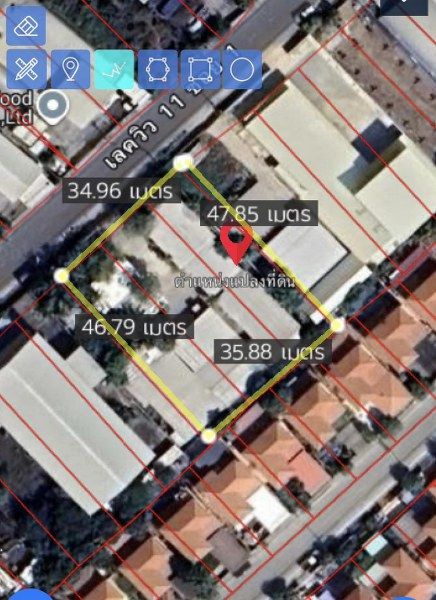หน้ากว้าง 35 เมตร ลึก 47 เมตร ในพื้นที่ดินมีห้องพักคนงาน