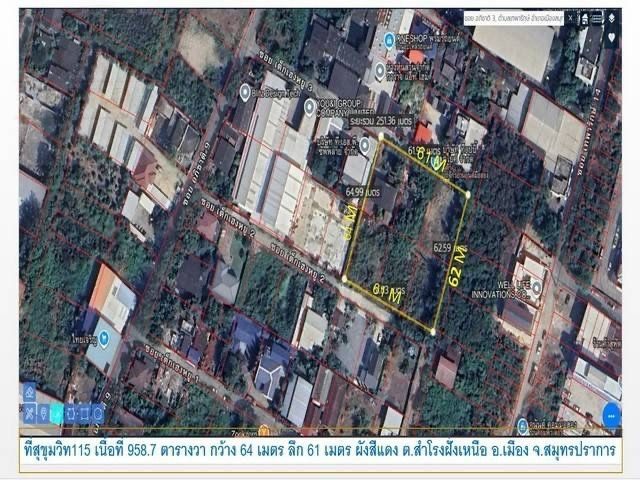 ขายต่ำกว่าราคาตลาดมาก ที่ดินสร้างสำนักงาน สร้างอพาร์ตเม้นท์ สุขุมวิท115 ซอยอภิชาติ9 เนื้อที่ 2-1-58.7 ไร่ (958.7 วา) ผังสีแดง สำโรง เมืองสุมทรปราการ 10270
