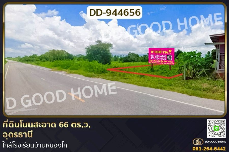 ที่ดินโนนสะอาด 66 ตร.ว.อุดรธานี ใกล้โรงเรียนบ้านหนองโก